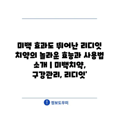 미백 효과도 뛰어난 리디잇 치약의 놀라운 효능과 사용법 소개 | 미백치약, 구강관리, 리디잇’