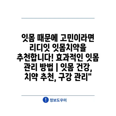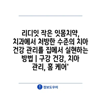 리디잇 작은 잇몸치약, 치과에서 처방한 수준의 치아 건강 관리를 집에서 실현하는 방법 | 구강 건강, 치아 관리, 홈 케어’