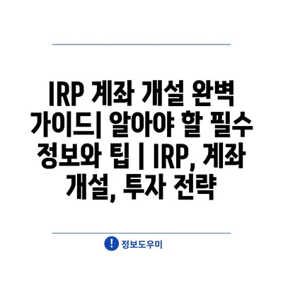 IRP 계좌 개설 완벽 가이드| 알아야 할 필수 정보와 팁 | IRP, 계좌 개설, 투자 전략