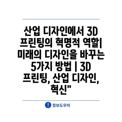 산업 디자인에서 3D 프린팅의 혁명적 역할| 미래의 디자인을 바꾸는 5가지 방법 | 3D 프린팅, 산업 디자인, 혁신”
