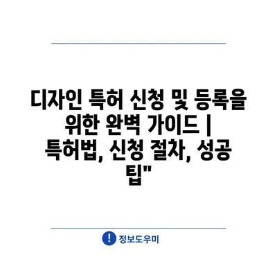 디자인 특허 신청 및 등록을 위한 완벽 가이드 | 특허법, 신청 절차, 성공 팁”