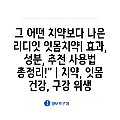 그 어떤 치약보다 나은 리디잇 잇몸치약| 효과, 성분, 추천 사용법 총정리!” | 치약, 잇몸 건강, 구강 위생