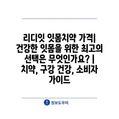 리디잇 잇몸치약 가격| 건강한 잇몸을 위한 최고의 선택은 무엇인가요? | 치약, 구강 건강, 소비자 가이드