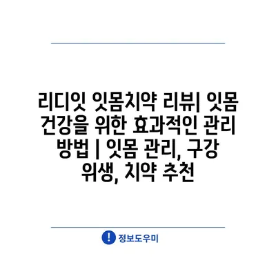 리디잇 잇몸치약 리뷰| 잇몸 건강을 위한 효과적인 관리 방법 | 잇몸 관리, 구강 위생, 치약 추천