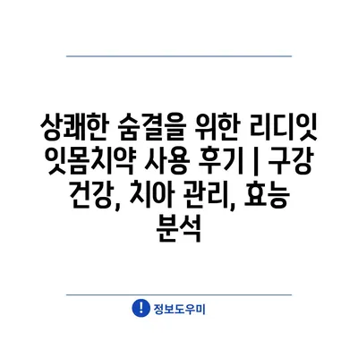 상쾌한 숨결을 위한 리디잇 잇몸치약 사용 후기 | 구강 건강, 치아 관리, 효능 분석