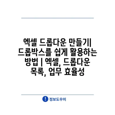 엑셀 드롭다운 만들기| 드롭박스를 쉽게 활용하는 방법 | 엑셀, 드롭다운 목록, 업무 효율성