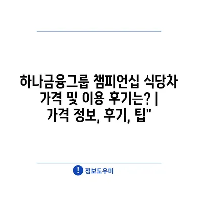 하나금융그룹 챔피언십 식당차 가격 및 이용 후기는? | 가격 정보, 후기, 팁”