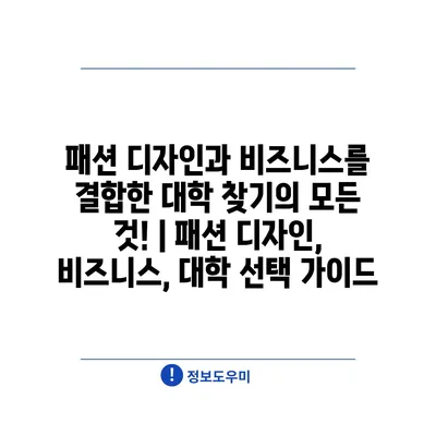 패션 디자인과 비즈니스를 결합한 대학 찾기의 모든 것! | 패션 디자인, 비즈니스, 대학 선택 가이드