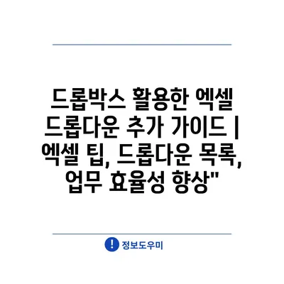 드롭박스 활용한 엑셀 드롭다운 추가 가이드 | 엑셀 팁, 드롭다운 목록, 업무 효율성 향상”